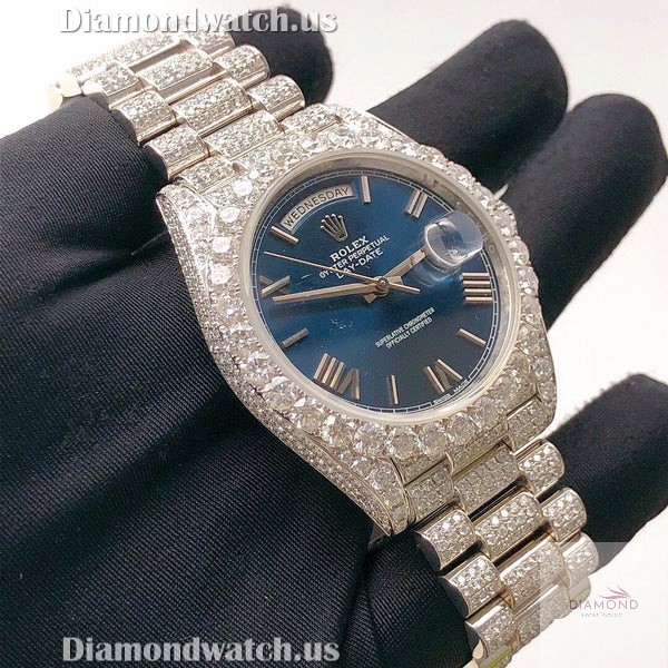 Custom Made Rolex daydate Blue Dial 41mm Moissanite diamond jubilee watch