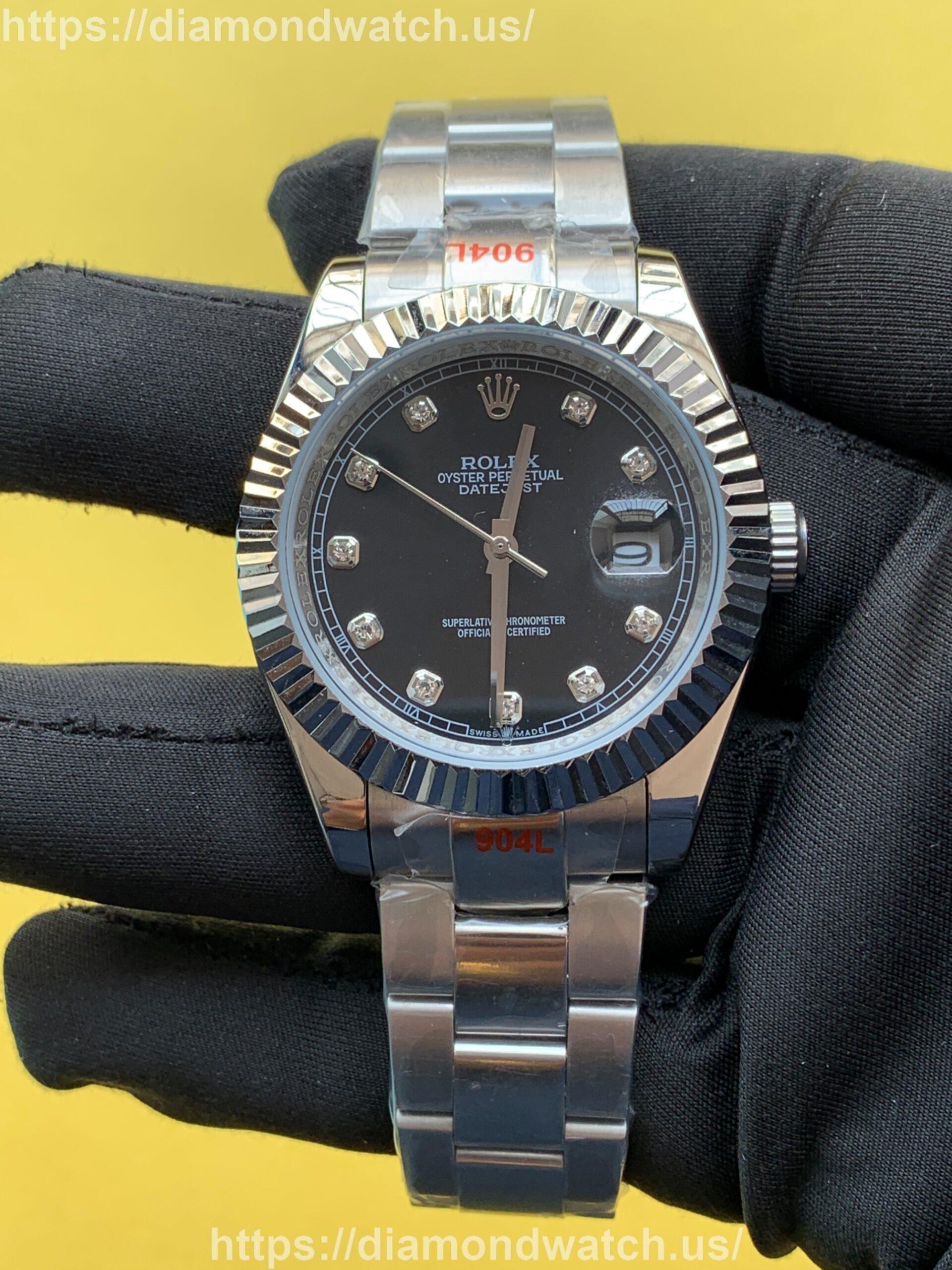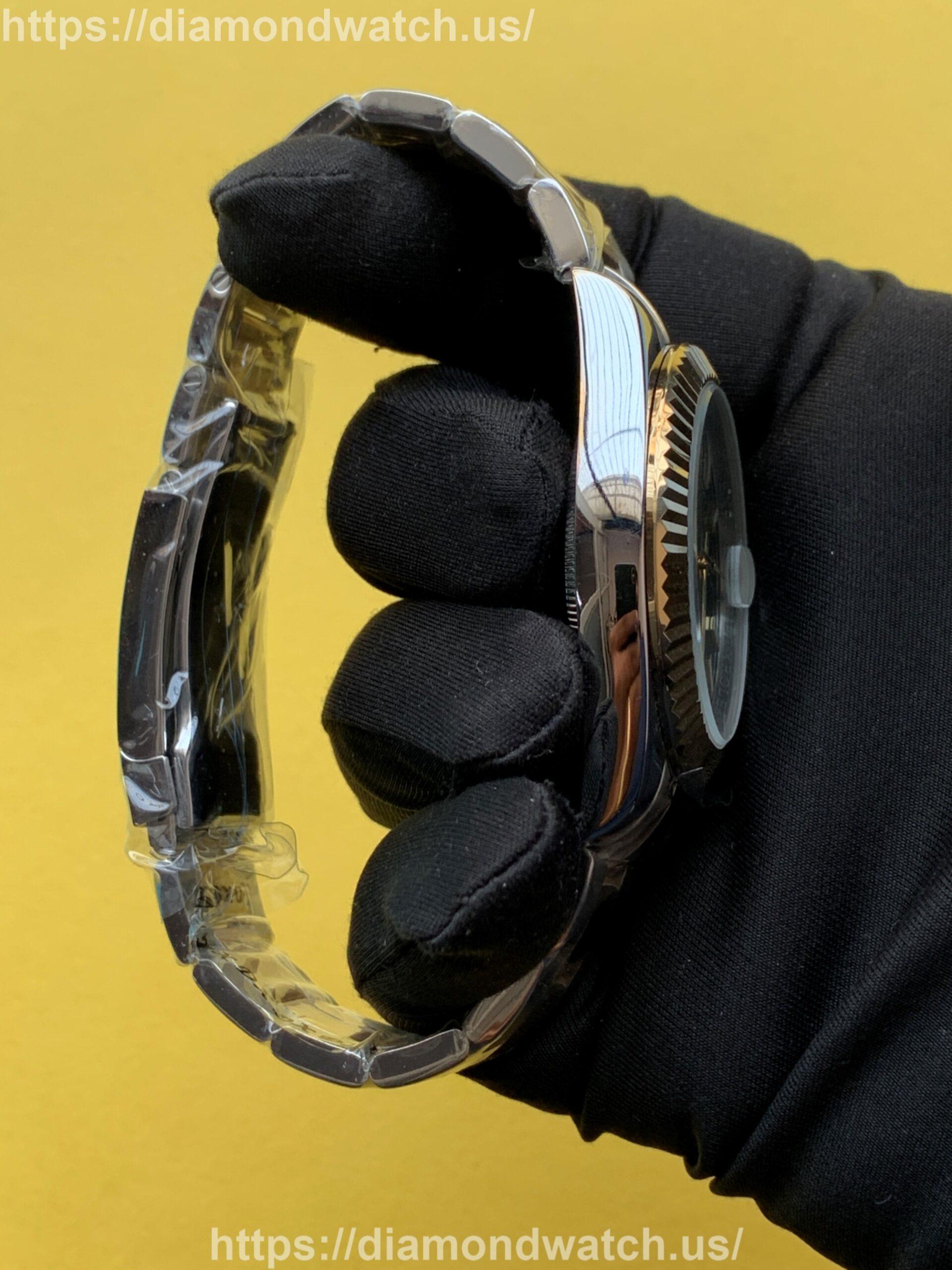 Custom Rolex Datejust 41mm Black Dial Jubilee Moissanite Diamond 2 Tone Watch