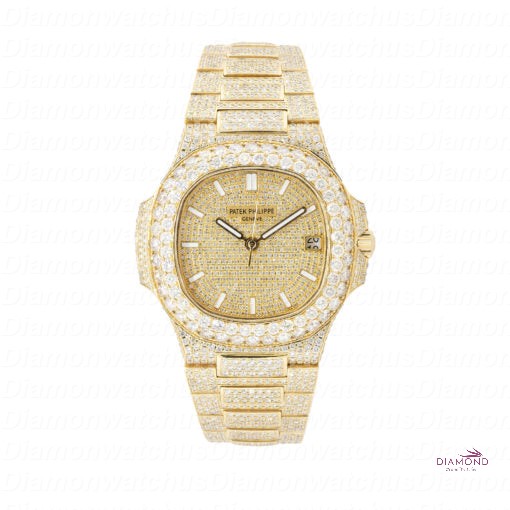 ✦Patek Philippe Nautilus Round Moissanite Diamond Men Automatic Watch, Yellow Gold Plated Men Watch For Birthday Gift