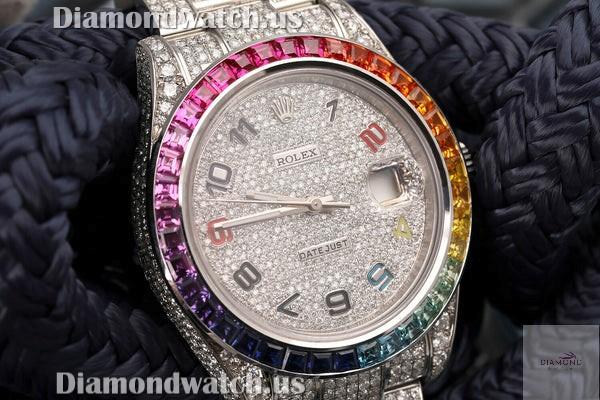 ✦ Rolex Datejust Presidential Moissanite Diamond Men Watch, 41mm Dial White Gold Plated Stainless Steel Men Watch For Gift, Fully Iced Out Birthday Gift Watch For Him