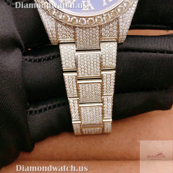 ✦Rolex Roman Blue Moissanite Diamond Iced Out Men Watch, 41mm Dial White Gold Plated Stainless Steel oyster bracelet Men Watch For Gift, Fully Iced Out Birthday Gift Watch For Him