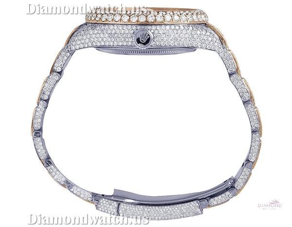 ✦Rolex Sky Dweller Baguette & Round Moissanite Diamond Men Watch, 42mm Dial White & Rose Gold 2 Tone Plated Stainless Steel Men Watch For Gift, Fully Iced Out Birthday Gift Watch For Him