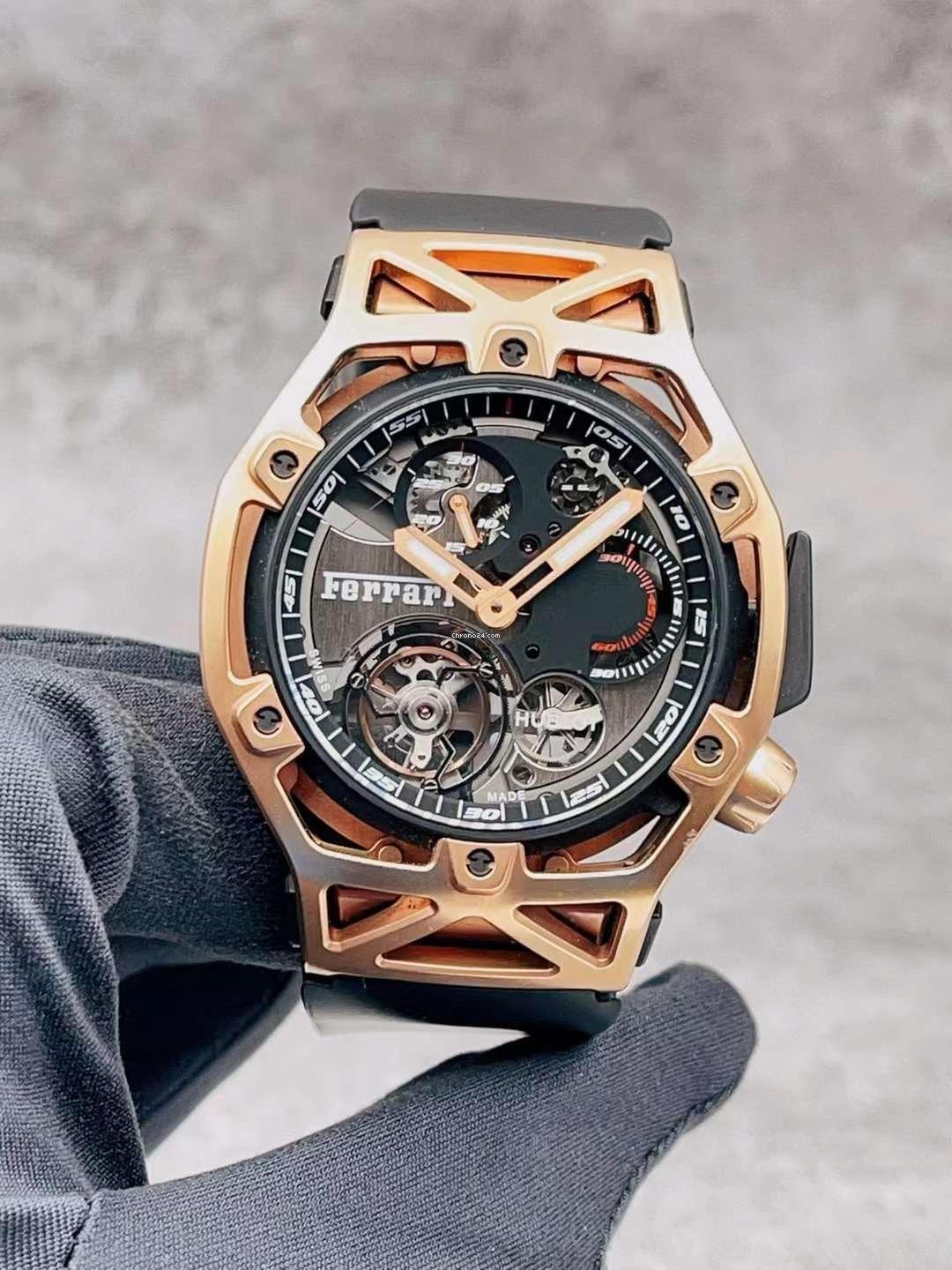 The Hublot Techframe Ferrari Tourbillon Chronograph Limited Edition (Ref. 408.OI.0123.RX) is a luxury men’s watch that combines Ferrari-inspired design with Swiss precision. Featuring a tourbillon movement, bold chronograph function, durable lightweight case, and sporty rubber strap, it delivers both performance and exclusivity. A true collector’s piece showcasing innovation, craftsmanship, and iconic style.”
