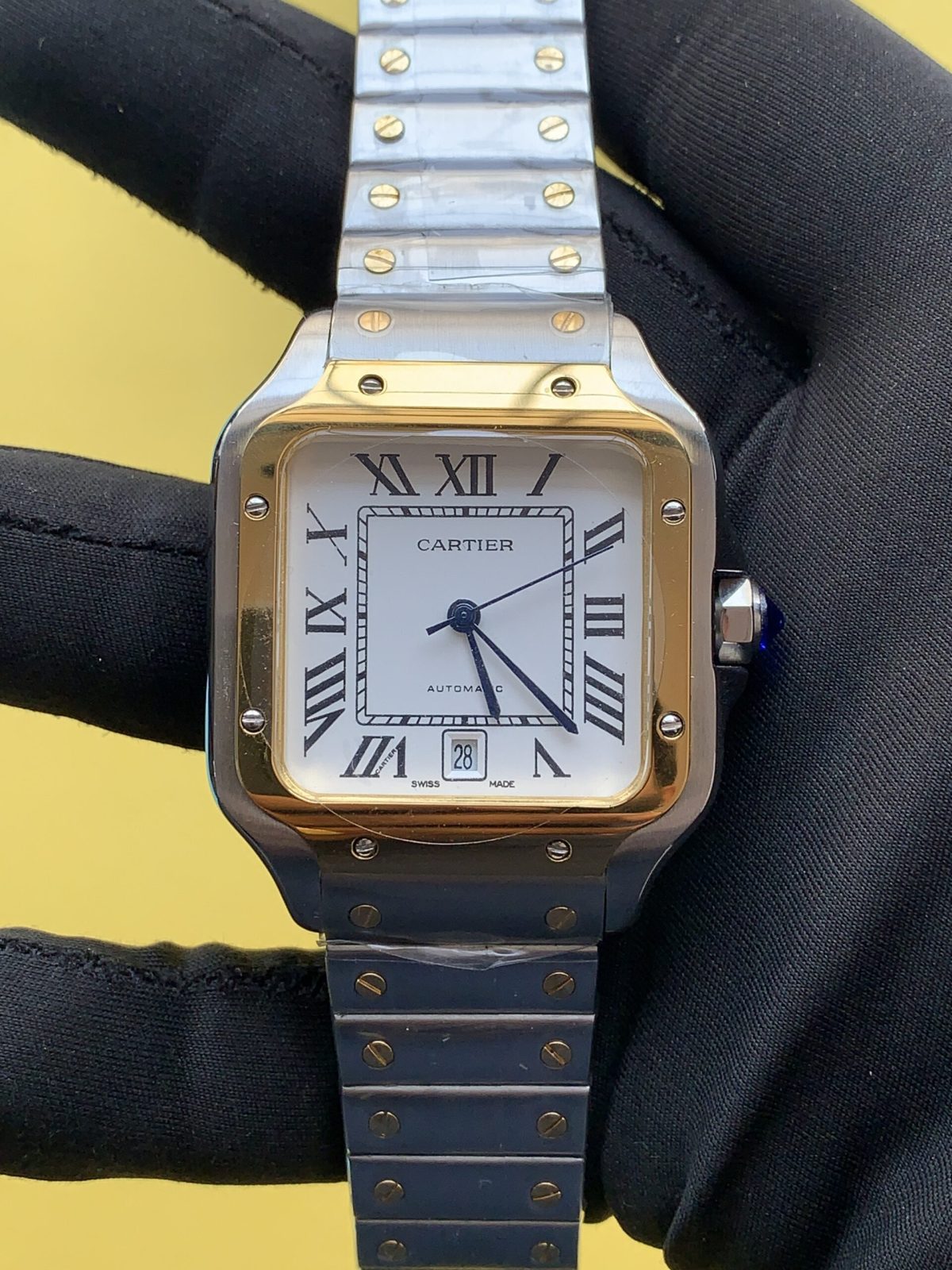 Santos De Cartier two tone Medium 36mm Yellow Gold Silver Roman Dial Ladies Watch W2SA0016 and Automatic movement, it blends luxury and functionality seamlessly.