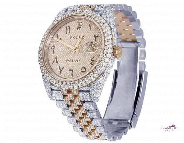 ✦Rolex Jubilee Datejust Round Moissanite Diamond Men Watch, Rose 40mm Arabic Dial Rose & White Gold 2 Tone Plated Stainless